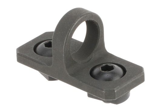 The Midwest Industries M-Lok Steel Sling Adaptor works on any M-LOK compatible rail for attaching a sling to the M-LOK slot with an HK style hook. It features durable 4140 steel construction with a phosphate finish and includes the attachment hardware needed.