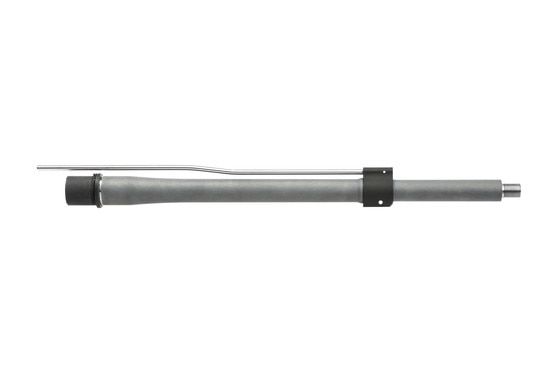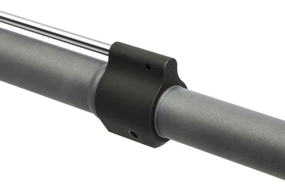 The barrel ships with gas block. This barrel is designed for our gas block that is 1" long (INCLUDED). A standard front sight base is 1.9" long and WILL NOT FIT. Barrel installation should be performed by a qualified gunsmith. Installation of the gas block dowel pin and gas block is required to complete the assembly process.