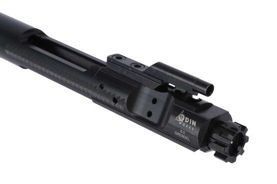 The 6.5 Grendel Type 2 Black Nitride Bolt Carrier Group features a full mass M16 cut carrier machined from case hardened 8620 tool steel. The bolt is machined from 9310 super alloy steel with a Type 2 bolt face for enhanced reliability. Both the carrier and bolt are finished in advanced Black Nitride for low friction and high corrosion resistance.