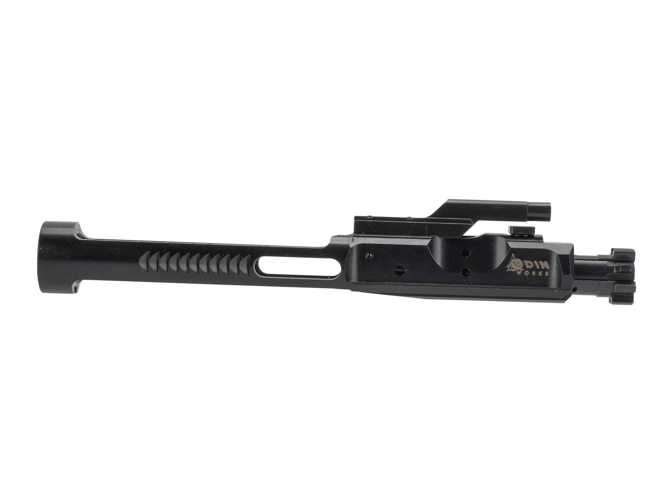 Push your limits with a faster, lighter rifle using the low mass High Performance bolt carrier group from Odin Works! Machined from the same durable 8620 tool steel as their standard bolt carrier groups, the Low Mass BCG features significant milling and lightening cuts, bringing it down to an impressive 9 ounces! reduced cyclic mass can reduce felt recoil and increase cyclic rate. The slick salt bath nitride finish reduces friction and significant protection against wear and corrosion. Tune your rifle for maximum performance with the Odin Works Low Mass AR-15 bolt carrier group.