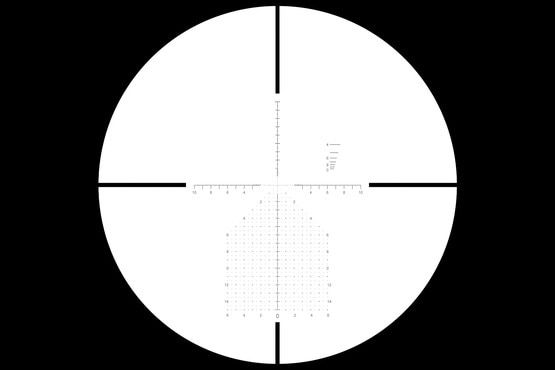 The ACSS® Athena BPR MIL reticle is a purpose-built MIL-GRID style reticle, designed for extreme precision at extended distances. Unlike traditional crosshairs, it uses a chevron tip at the center aiming point, offering an infinitely precise point of aim that doesn’t obscure the target. The reticle’s center area features fine 0.1 MIL subtensions, while the MIL Grid offers 0.5 MIL dots, extending 15 MIL down and 6 MIL to each side. This reticle also features our built-in target ranging system, which can be used to instantly estimate a target’s distance, by height or width, from 400 to 1000 yards.