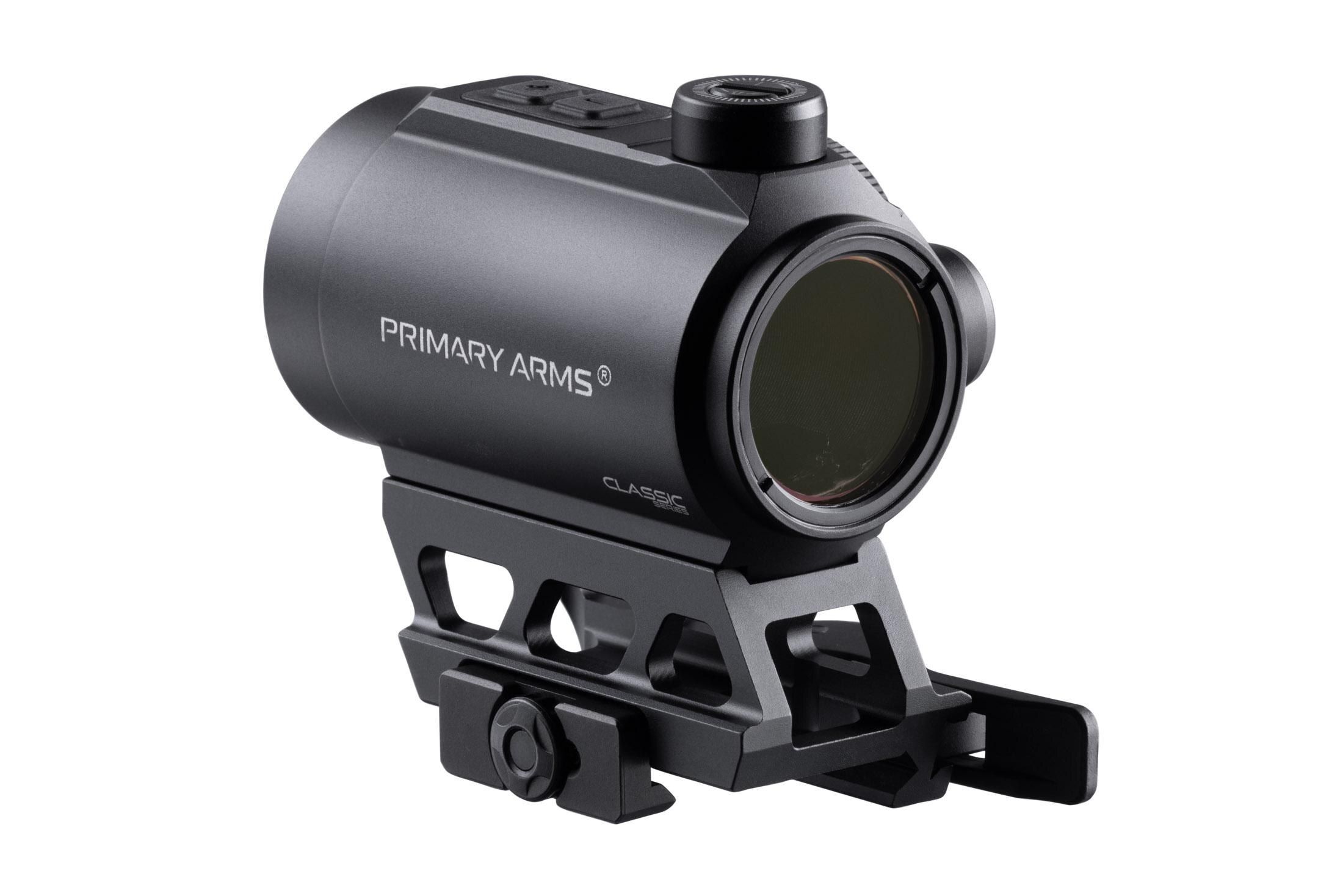 Bridging the gap between the Classic Series micro dots and the more premium SLx MD-25, the new Classic Series RD-25 brings the field-proven advantage of a 25mm aperture to an affordable optics line. With its wider field of view, the RD-25 offers greater visibility and situational awareness when looking through your optic. The RD-25 has also undergone extensive recoil and field testing to prove that it is just as durable as more expensive optics, so you can be confident that this microdot will last. Not only is the aluminum housing extremely durable but it features fully multi-coated lenses that are anti-reflective and fog resistant and has been rated at IP67 for water resistance. The high-power LED emitter provides plenty of visibility even on the brightest days and the top mounted buttons make it easy to cycle through all 10 brightness levels. Right out of the box, the RD-25 red dot sight comes with a rugged and lightweight QD mount with an adjustable tension lever, so you can don't have to worry about shopping for a new mount. However, it still uses the industry standard mounting footprint, so you can pair it with the Primary Arms Micro Dot Offset mount for use with either the 3x or 5x MicroPrisms™.
