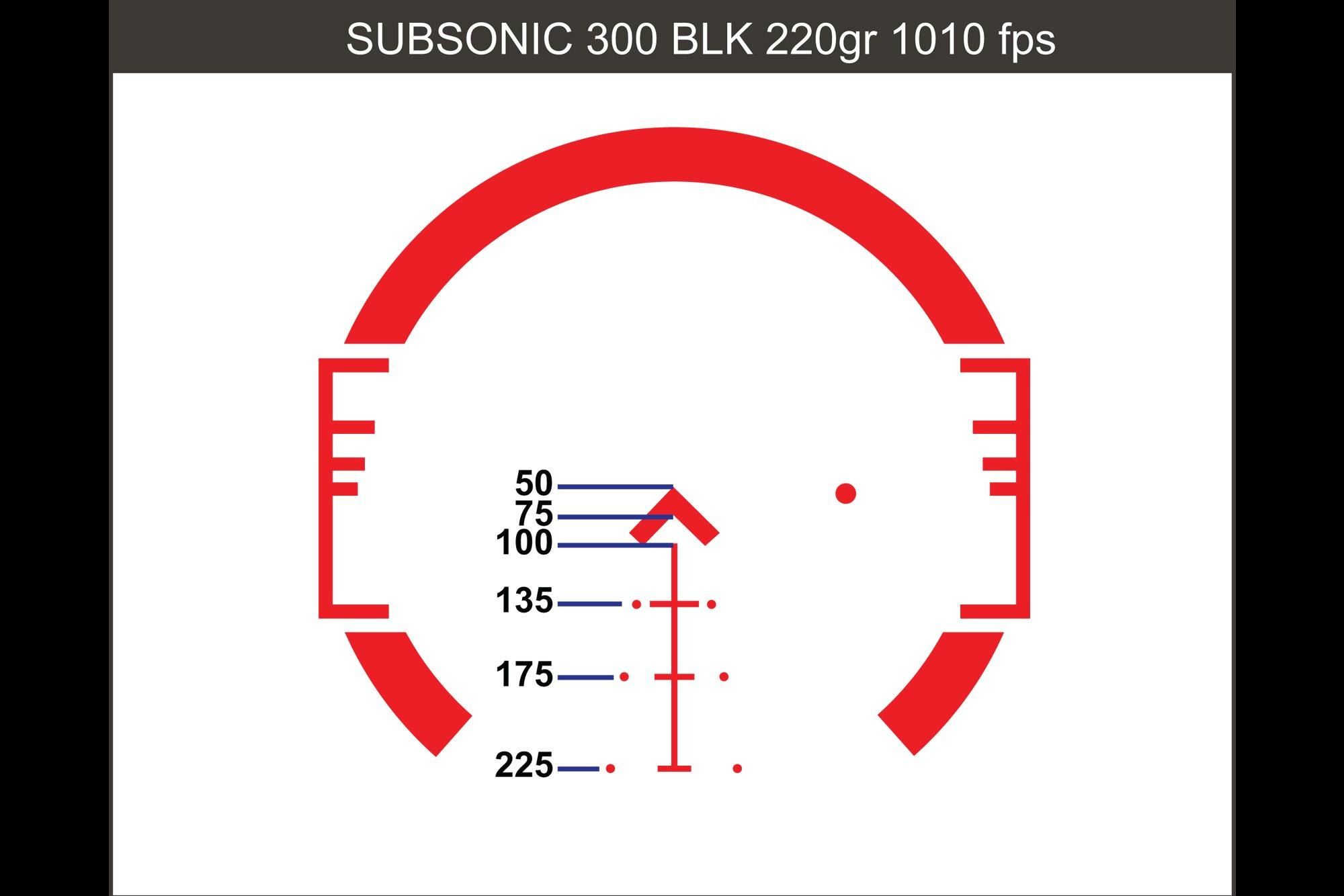 - ACSS CQB 300 BLK/7.62x39 chevron reticle has BDC and ranging out to 600 yards with supersonic 7.62x39mm or 300 Blackout ammo and 225 yards with subsonic.