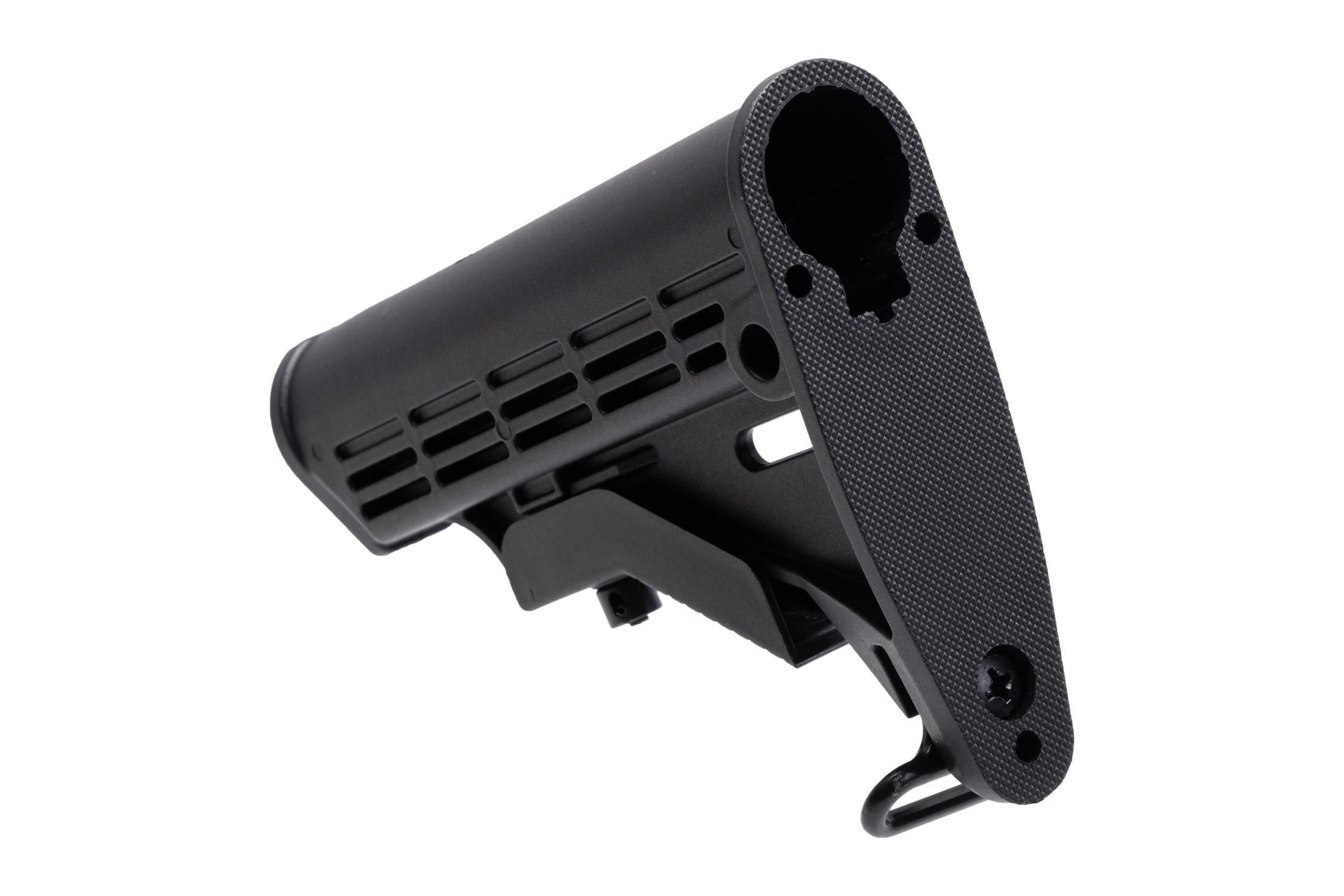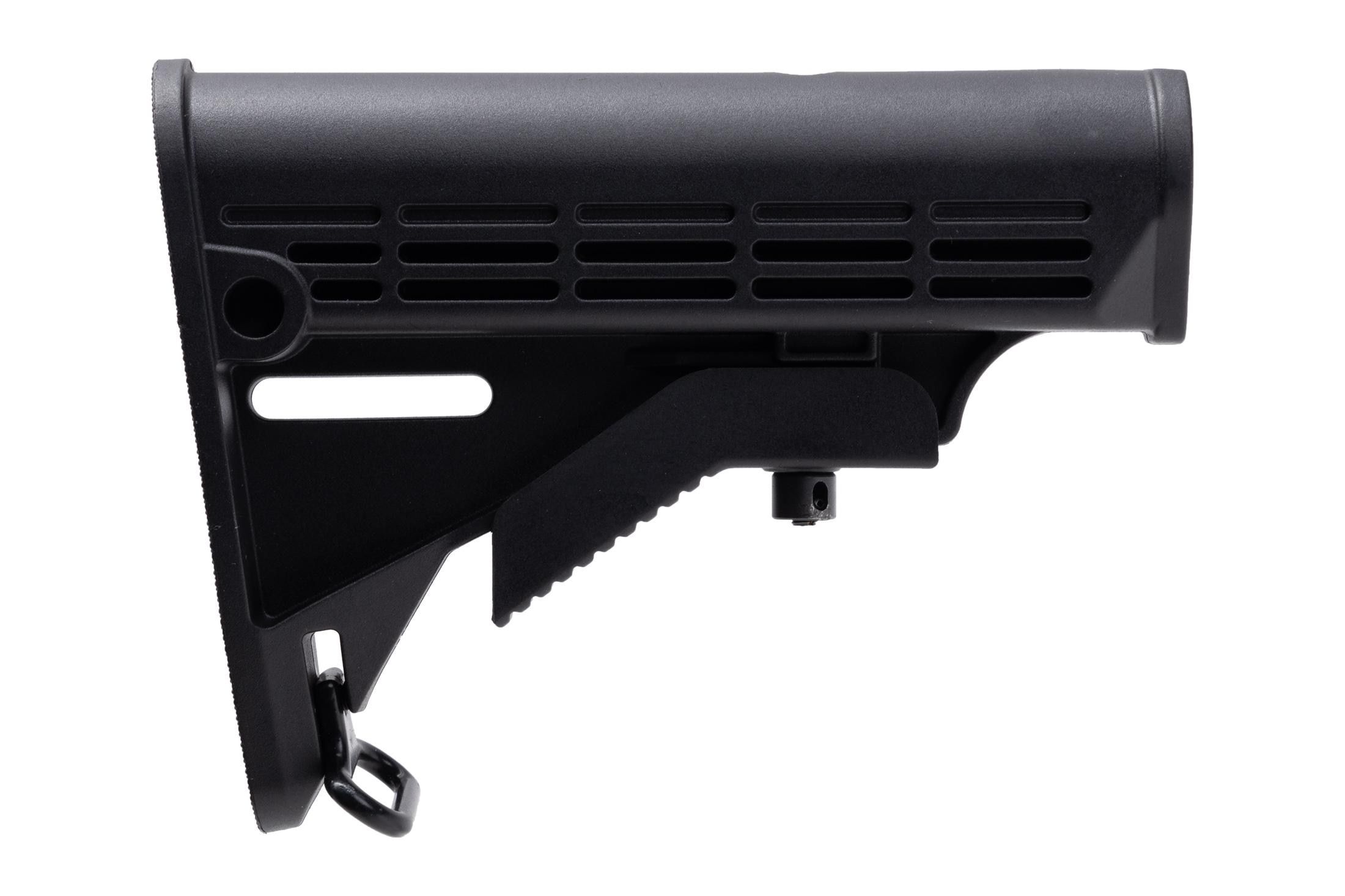 This stock is a standard Milspec stock. It works great on my M4 replica. I like that it has the rear sling ring.
