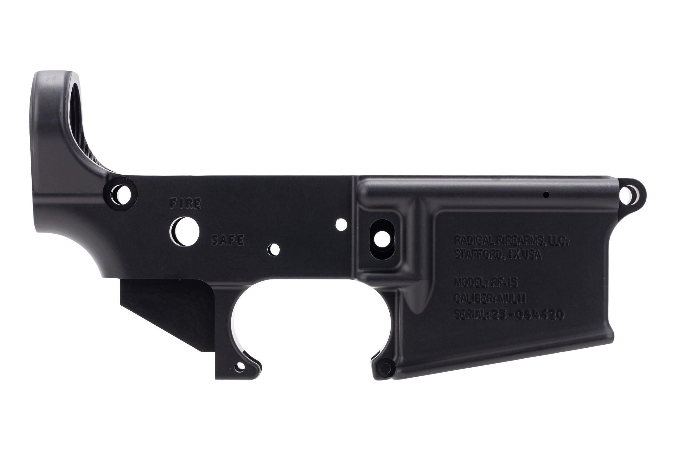 The Radical Firearms Stripped AR-15 Lower Receiver is an easy way to get started on your next build. The lower is built to Mil-Spec out of forged 7075-T6 aluminum and hardcoat anodized black. This forged AR-15 stripped lower receiver is compatible with Mil-Spec parts and accessories. Get started building your next AR-15 carbine today with this complete lower receiver.