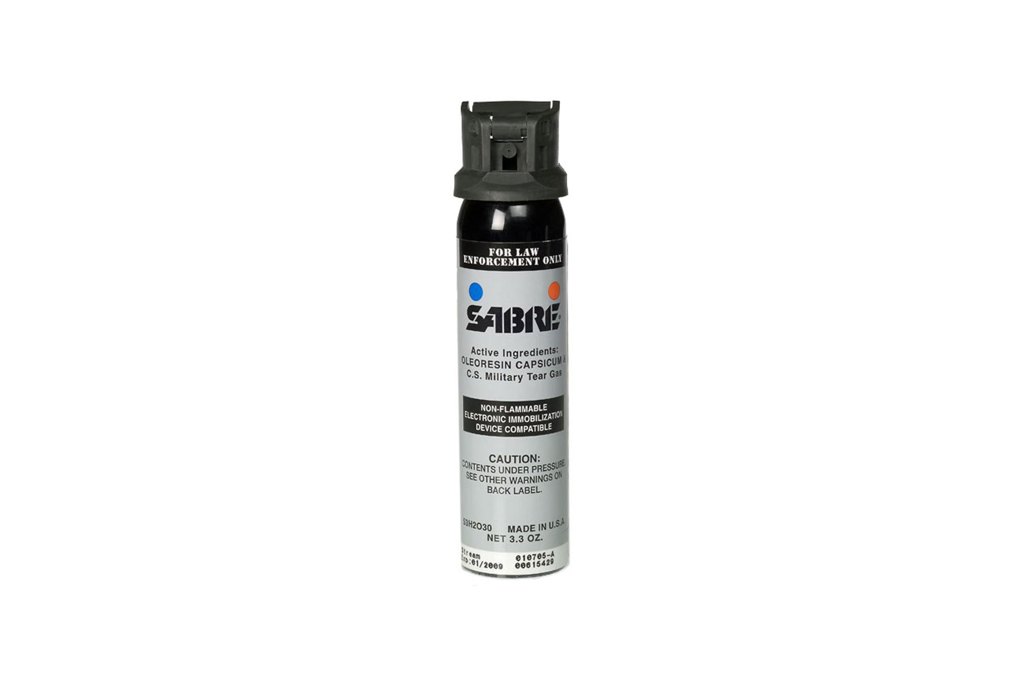 The Sabre Advanced Level III H2O MK-4 3.3 ounce Spray offers incredible stopping power in an easy-to-use package. Its design is optimal for personal protection, making it ideal for law enforcement professionals and civilian users. The Sabre Advanced Level III H2O MK-4 stream can deploy 18 one-second bursts that reach 12 to 15 feet. The flip-top firing mechanism provides the fastest possible activation when deploying the unit from concealment. Sabre's most potent formula delivers blinding defensive bursts that effectively disable would-be assailants. The law enforcement strength spray causes maximum irritation in the target's eye, ears, throat, and nose, giving the user time to effect an escape.