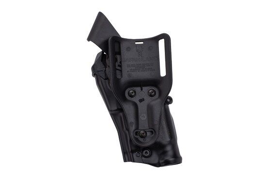 The Safariland 6360RDS is a mid-ride level III retention holster made for firearms equipped with red dot sights and weapon lights. These open-top holsters are mid-ride and place the butt of your pistol even with the belt line for comfortable everyday carry. They feature innovative Automatic Locking System technology that secures the weapon in place and only releases it when the thumb release is swiped with an established grip. This keeps the gun in place during rigorous movement while still allowing a natural draw. The 6360RDS models are thermal molded from SafariLaminate with a protective suede lining and STX Plain Black finish that'll look great even years down the line after constant wear. This model is designed specifically for use with FN 509 firearms equipped with SureFire X300U weapon lights.