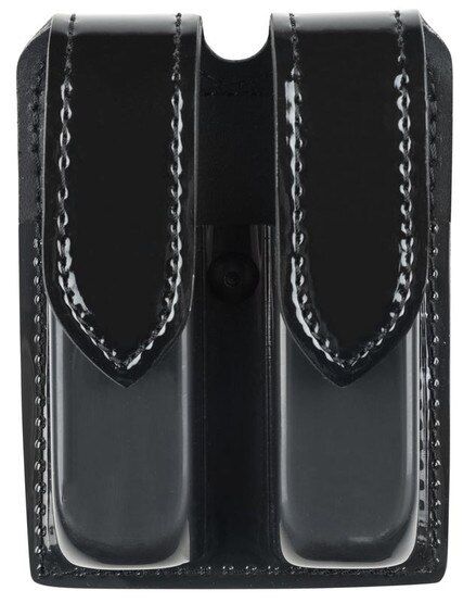 The Safariland Model 77 Double Magazine Pouch allows you to carry two spare double-stacked 9mm magazines for the Glock 17 service pistol. Designed to accommodate a 2.25” duty belt, the Model 77 in has vertical and horizontal belt slots, allowing you to carry it in either a vertical or horizontal position.