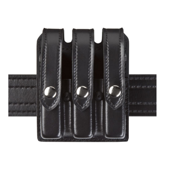 Safariland 777 Slimline Triple Magazine Pouch Fits GLOCK 17/22 - Plain Black with Chrome Snap