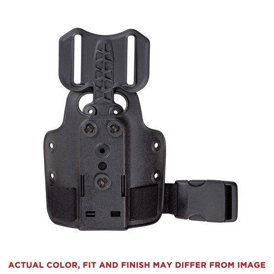 Drop Leg holsters are prized for their ability to keep the firearm secure while allowing the wearer to maintain flexibility and the Safariland Single Strap Leg Shroud with Drop Flex Adapter (DFA) is made to raise the bar on standard options. One of the biggest complaints of drop leg platforms is the weight can feel lop sided towards the bottom of the thigh and that the pistol draw is slower due to the distance. The Safariland Single Strap Leg Shroud raises the height, further up the thigh which feels more stable and allows for a quicker draw. With the Drop Flex Adapter (DFA) you can attach your holster and two accessories to the leg shroud.