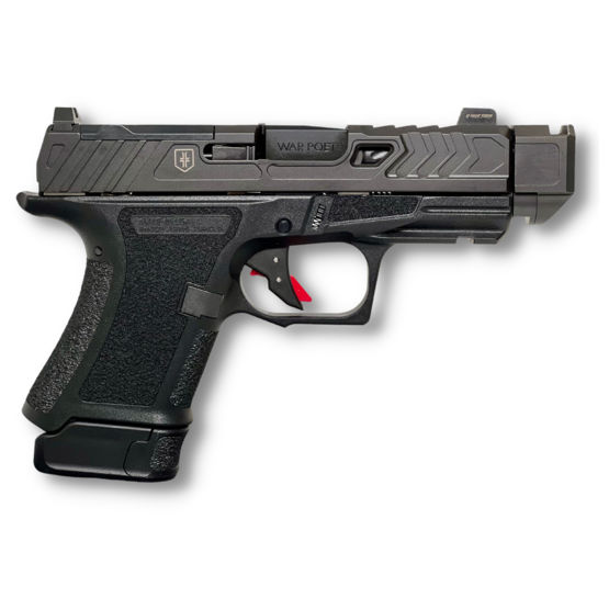 The Shadow Systems CR920P War Poet 9mm pistol is a compact powerhouse designed for precision and performance. With a barrel length of 3.75 inches, this striker-fired semi-automatic pistol offers excellent accuracy in a smaller frame size.