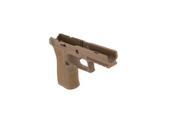 The Sig Sauer P320 X-Series Grip Module is a quick and easy way to customize your pistol’s fit and feel. The X-Series grip module is compatible with P320 and P250 pistols in 9mm, .40 S&W and .357 SIG and offers the quality and precision you would expect from Sig Sauer. The P250/P320 grip module is constructed with a high quality polymer offering the durability and toughness you have come to expect from a Sig product. It features an ergonomic grip that provides optimal comfort and fit improving your control of the pistol. The size selection allows shooters to customize the fit of the grip to their hand size and preference. Simply install your P320 or P250 firing control unit with the Sig Sauer X- Series Grip Module and you have an optimized firearm for your hand and grip (requires the 9mm, .40 or.357 slide and barrel). Designed to function with compact and sub-compact slide. If you have ever complained about the fit of your Sig grip but love the gun, this might be your solution. The Sig Sauer P320 X-Series Grip Module for 9mm, .40 S&W and .357 SIG is a quick and easy way to customize the fit and feel of your favorite Sig. This is a carry module in coyote, size medium.