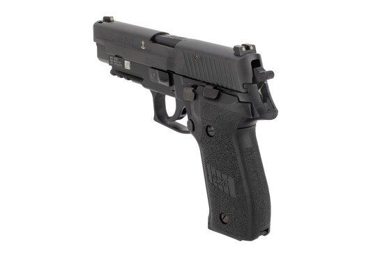 The Sig Sauer P226 MK25 is a high-quality pistol developed through input from elite shooting professionals and is designed to exceed the expectations of every shooter. Once reserved only for an elite few, the MK25 delivers the advanced features that made the P226 the official sidearm of the U.S. Navy SEALs. This P226 MK25 is the ultimate combination of versatility and performance. It offers reliability and high-performance with the P226's smooth double-action/single-action trigger. The P226 offers a reduced and contoured beavertail allowing a higher grip with a reduced profile to help eliminate printing. An X-Five undercut has been applied to the trigger guard enhancing the higher grip and greater control of the pistol. Its aggressive front strap checkering and checkering under the trigger guard further enhances the grip. It boasts front cocking serrations providing a greater purchase for cycling the action and clearing the firearm. The pistol is finished in a black nitride coating, custom G-10 grips with a Legion medallion and three magazines. This pistol is a 9mm and features low profile decocking and slide catch levers to reduce the risk of snagging.