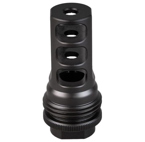 The SilencerCo ASR Muzzle Brake in 1/2x28 .223 is a precision-engineered recoil and muzzle climb-reducing muzzle device, providing enhanced control and accuracy. This 3-port design effectively redirects propellant gases, providing stable follow-up shots. The premium construction of this muzzle device is complimented by a durable black nitride finish. The ASR muzzle brake is compatible with the SilencerCo ASR Mount for suppressor mounting versatility, and includes a shim set and Rocksett for easy installation, making it an ideal choice for serious shooters seeking quick-mount versatility and superior shooting experience.
