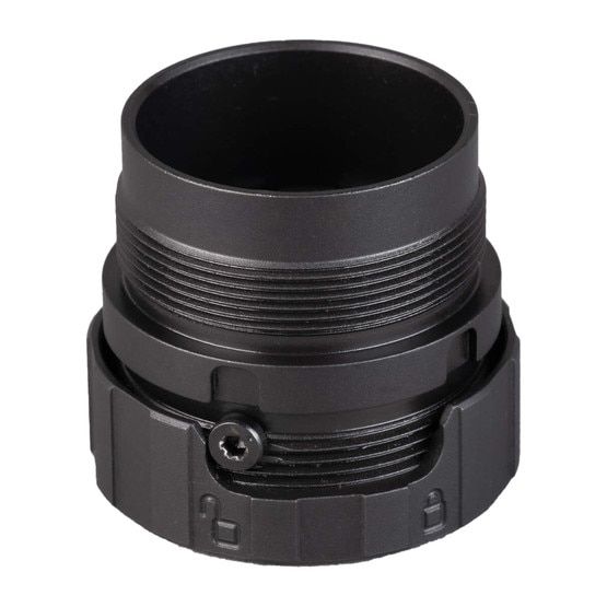 The SilencerCo BRAVO ASR Mount is a reliable quick attach/detach system for suppressors, designed for total compatibility with ASR Flash Hiders, Closed-Tine Flash Hiders, Muzzle Brakes, and Single Port Muzzle Brakes. The mount connects directly to your suppressor, utilizing the ASR Muzzle Device for enhanced performance. The locking ring ensures the suppressor stays securely in place, preventing any rotation during use. This mount is compatible with the Omega 300, Hybrid 46, Scythe-Ti, and Bravo MAAD Brakes.