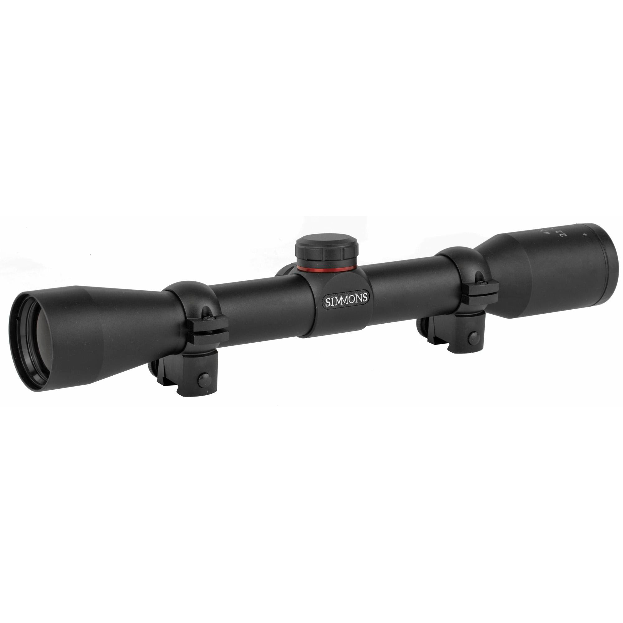 The Simmons 22 Mag Rimfire 4x32 Rifle Scope with TruPlex Reticle offers several innovative features and includes scope rings for right out-of-the-box installation. It combines fully coated lenses with a QTA eyepiece for easy target acquisition and a clear, high-contrast image. SureGrip turrets for windage and elevation adjustments are easy to use even while wearing gloves. The Simmons 22 Mag Rimfire 4x32 Rifle Scope provides outstanding precision in an affordable package.