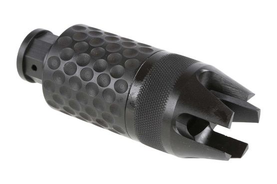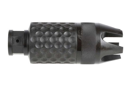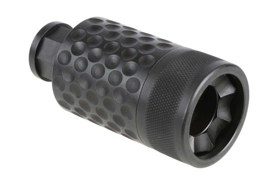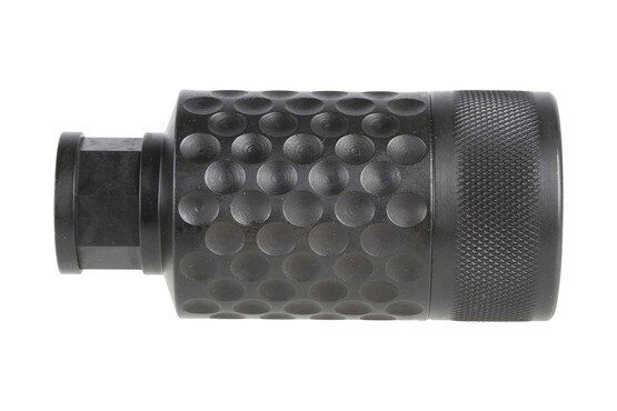 The modular design accepts multiple different end caps, attachments, and thread protectors, allowing the operator to tailor their weapon system to a specific application. The front end has an integrated striking surface/glass breaker with 1 1/8" wrench slots for easy disassembly for fast and simple cleaning and maintenance without removing the body from the barrel. The Barking Spider’s body will bring a 14.5" barrel to 16” long when permanently attached.