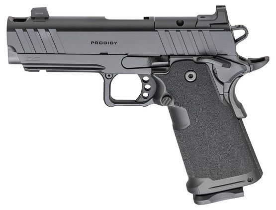 The Springfield Armory 1911 DS Prodigy AOS Optic Ready 9mm Pistol with ported 4.25" barrel and integrated compensator is your next competition ready handgun. Based on the legendary precision and ergonomics of the 1911, the Prodigy cranks up the capacity with double-stack magazines making it a great choice for competitive shooting. Modern enhancements include forward slide serrations, accessory rail, ambidextrous controls, skeletonized hammer, and the Agency Optics System to mount your favorite pistol red dot sights. Get a grip on the future with the 1911 DS Prodigy AOS!