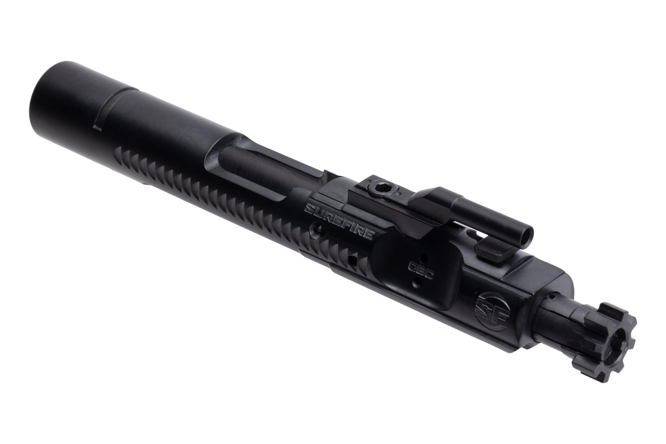 The SureFire Optimized Bolt Carrier also features an improved cam path that delays the unlocking of the bolt, resulting in a 15% decrease in chamber pressure before unlocking. This design enhancement contributes to smoother operation and improved overall performance. To enhance durability and performance, the bolt carrier group is coated with self-lubricating Diamond-Like Carbon (DLC) and S-Line coatings. These advanced coatings reduce friction, providing consistent and dependable operation even in adverse conditions.