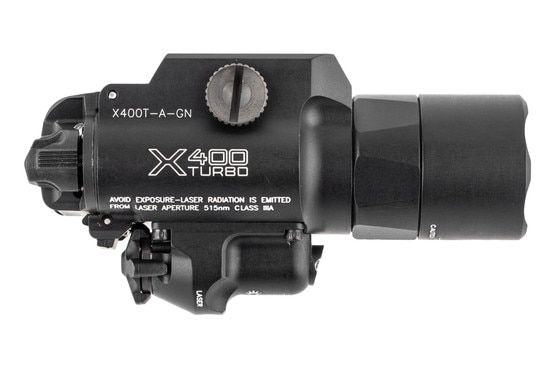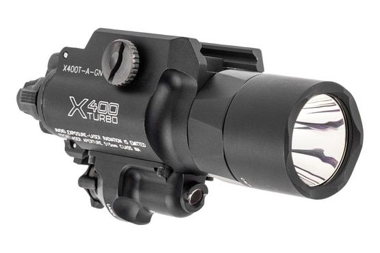 The SureFire X400 Turbo Weaponlight integrates stunningly powerful white light illumination and bright red laser aiming capabilities in one compact rail-mountable package, an extremely effective combination for close- to medium-range engagements in law enforcement, military, and self-defense applications.