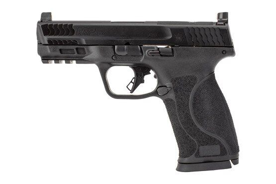 The feature-rich S&W M&P 2.0 comes optic-ready with a slide cut for your favorite optic system. Chambered for the decisive 10mm round, this M&P 2.0 also features a flat face trigger that helps you retain consistent finger placement and more accurate repeatable follow-up shots. As with all of the M&P line of pistols, Smith & Wesson constructs the grip of this M&P 2.0 with an 18-degree grip angle that fosters a natural point of aim and the interchangeable palmswell grip inserts allow a comfortable and more positive grip and optimal reach of the trigger regardless of hand size. Smith & Wesson makes the fifteen-round M&P 2.0 with a patented trigger system that provides cleaner and crisp trigger pulls and a tactile and audible trigger reset that announces full travel of the fire control system. The S&W M&P 2.0 also features an extended rigid stainless steel chassis to reduce flex and excessive deforming torque during rapid-fire sessions. The patented take-down lever and sear deactivation system also help during maintenance disassembly without first pulling the trigger. Although the M&P 2.0 slide top plate is optic-ready, Smith & Wesson manufactures this pistol with a front sight optic White Dot and a rear Optic Height White 2-Dot sight system. Right from the box, the M&P 2.0 allows you to make precise, accurate shots in different lighting conditions, even without a reflex red dot. Accurate, comfortable, and affordable, the M&P 2.0 10mm with a 15-round capacity magazine from Smith & Wesson is a perfect solution for the mission and your pocketbook.