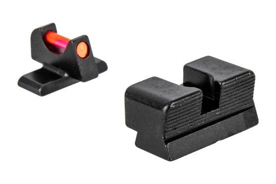 Trijicon's Fiber Sights are great for competition and carry alike. The sight bodies are machined and phosphated steel to provide exceptional durability that will hold up under heavy use. For wicked fast acquisition, the rear sights are blacked out to provide extra contrast with the bright fiber optic front sight insert. This high-contrast sight picture offers a simple and clean arrangement that makes getting on target easier than ever.