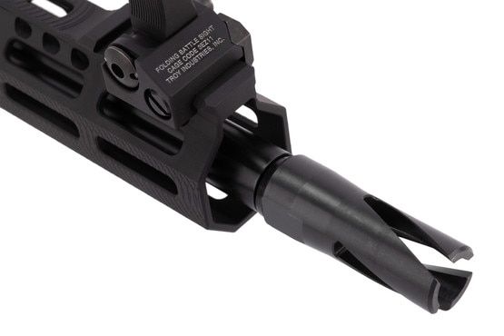 - Troy flip-up iron sights included