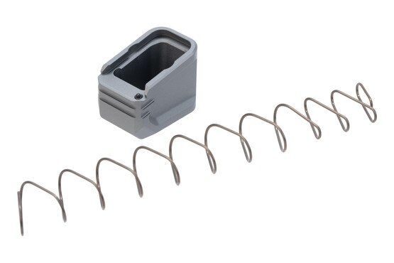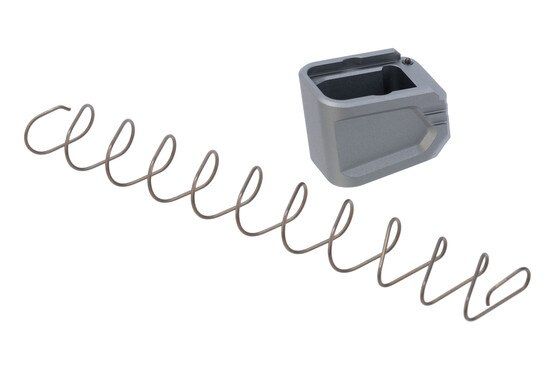 The Tyrant CNC Magazine Extension for Glock 19 gives you plus 5 rounds of 9mm ammunition or plus 4 rounds of .40 S&W depending on the gun you use it with. This Mag Extension features an innovative retention plunger that allows for easy installation and removal in a matter of seconds. It is precision CNC machined from aerospace grade aluminum to match the profile and dimensions of the Glock 19 frame for an aesthetically pleasing and seamless fit. Not only does it increase capacity, but it also improves ergonomics by giving you more surface area to grip onto and helps mags drop freely faster. Improve the performance and look of your Glock 19 with the Tyrant CNC Extended Magazine Basepad.