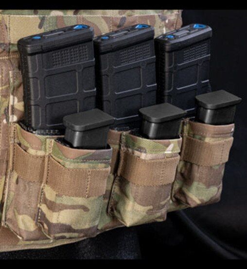 While most think of armor plates when they hear the name United Shield International, the company caters to a wide variety of military and law enforcement needs. This innovative and unique Triple Rifle Triple Pistol Stacked Pouch demonstrates United Shield International's dedication to providing quality products that answer the mission requirements.