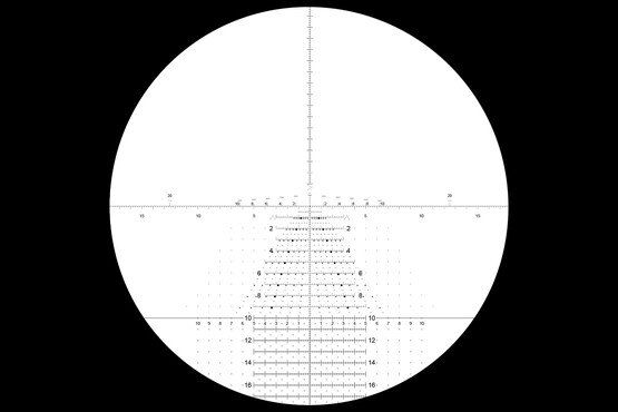 The Horus T-3 reticle on this optic is a simplistic but effective MILRADIAN reticle that places markings at one mil increments primarily below the horizontal crosshairs. This type of reticle clears the top half of the sight from clutter, making it easier to keep your focus on the target while setting up the shot. Whether you shoot at distances in your comfort zone or like to shake things up a bit with a more extended range shot, a Horus T-3 reticle and its hold-off capability will help you acquire and hit the target even in chaotic wind environments. Another fantastic feature of the T-3 reticle is that you can rely on the mil markings of the reticle to move from one target distance to another without having to ratchet your elevation turrets to the breaking point.