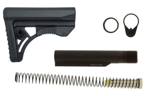 This kit includes a MIL-SPEC receiver extension, standard carbine spring, 3.0 ounce carbine buffer, receiver end plate, and standard castle nut.