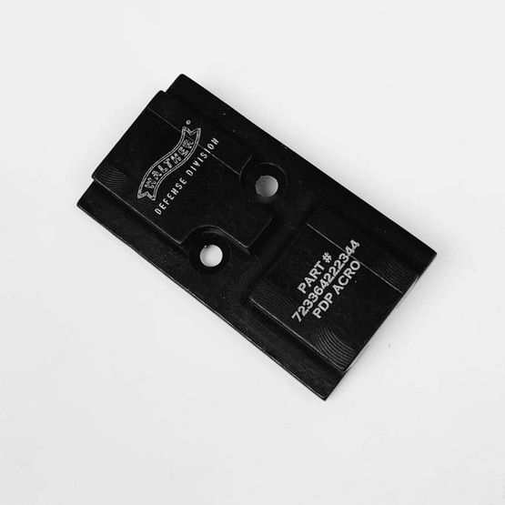 Walther PDP Optic Plate for the Aimpoint ACRO Red Dot comes straight from the Walther Arms factory and is made to work with your optics ready Walther PDP Pistol. These precision plates are CNC machined to the highest quality and undergo high stress testing to ensure that the optic stays put on the slide, which produces over 1,800 G-force when being fired. Walther Optics Plates include high tension screws that provide inner force to counter balance the external force and Walther has put 50,000 rounds down range in testing without ever having any maintenance or loosening of the screw. Your Walther PDP slide has been milled for use with red dot sights, but without this plate you can’t mount your favorite optic like the Aimpoint ACRO, so order yours today.