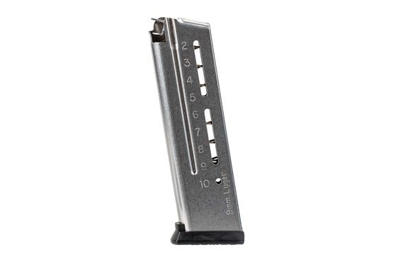 If you ever need to maintain a 1911 9mm magazine from Wilson Combat, the removable pad offers a more straightforward maintenance method. Not only will this magazine help you better maintain it, but the removable base pad offers you a versatile solution should you choose other base pad options. Built to last and competitively priced, this 1911 GOVT stainless steel 10-round magazine from Wilson Combat represents the best spare magazines to carry in your gear and a fantastic solution to load into your 1911.